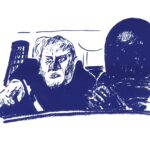 筆をはしらせる、滑らせる(ひとの輪郭のような感じがしてきて描く)。